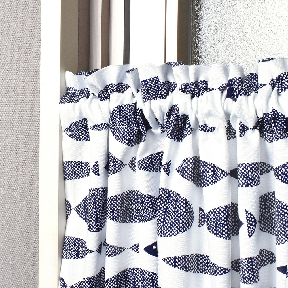 他の画像を見る アウトレット カフェカーテン 綿100% (47cm×100cm) スタンダードタイプ ブルーフィッシュ 定価 ¥ 1,800 のところ 当店特別価格 ¥ 900 税込 カートに入れる お気に入りに追加する