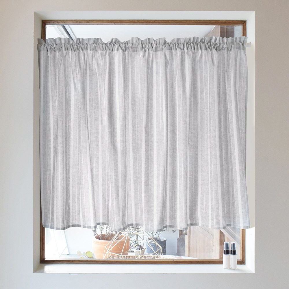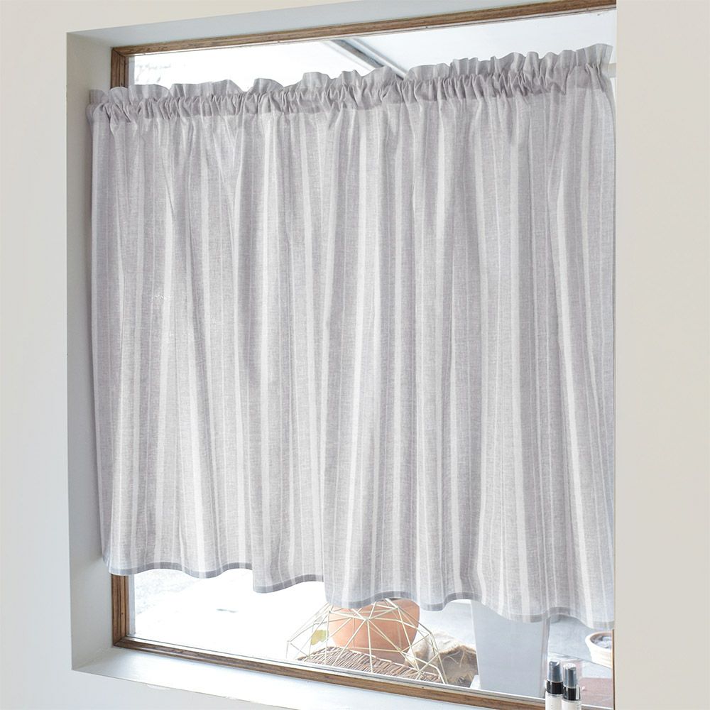アウトレット カフェカーテン 綿100% (72cm×100cm) スタンダードタイプ ミストグレーストライプ