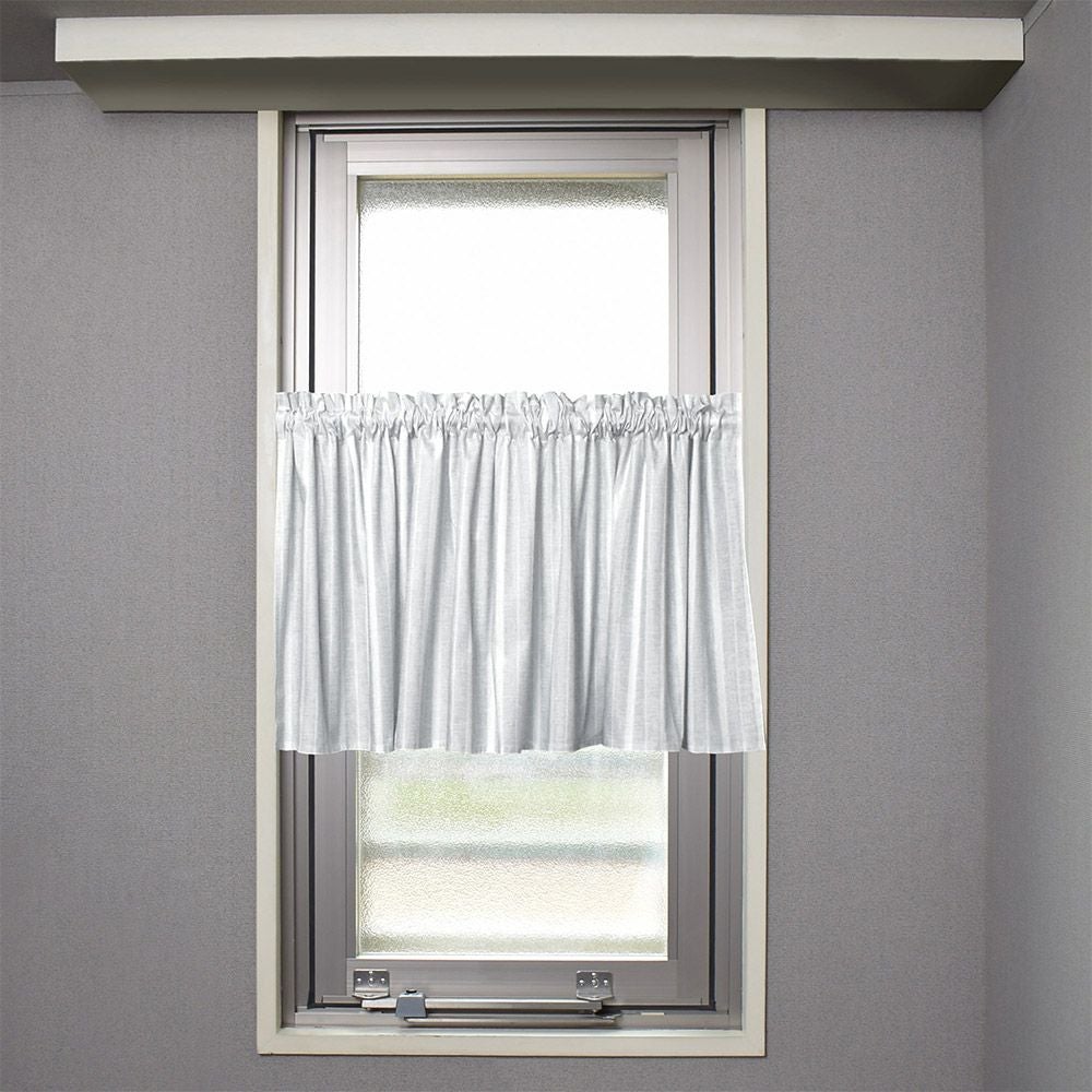 アウトレット カフェカーテン 綿100% (47cm×142cm) スタンダードタイプ ミストグレーストライプ