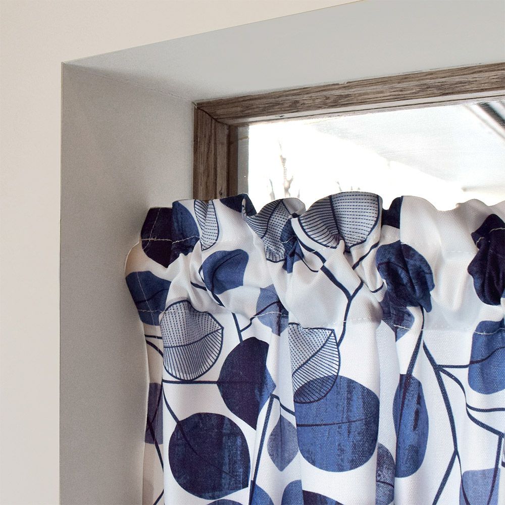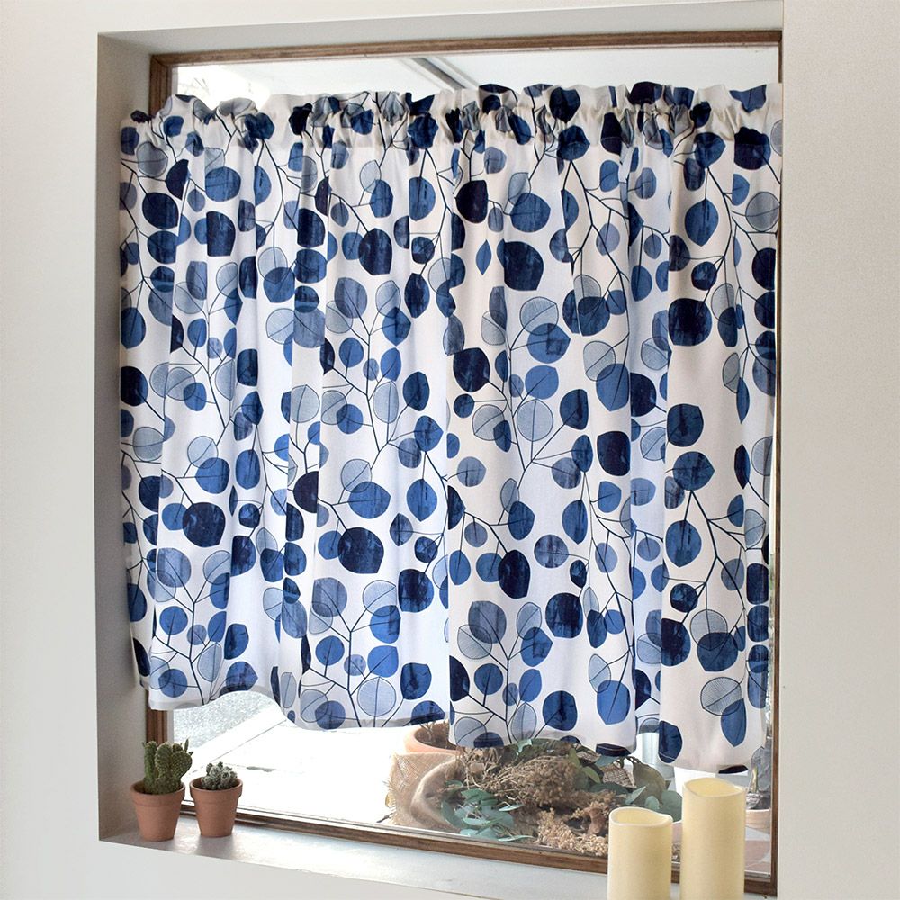 アウトレット カフェカーテン 綿100% (72cm×142cm) スタンダードタイプ ネイビーリーフ