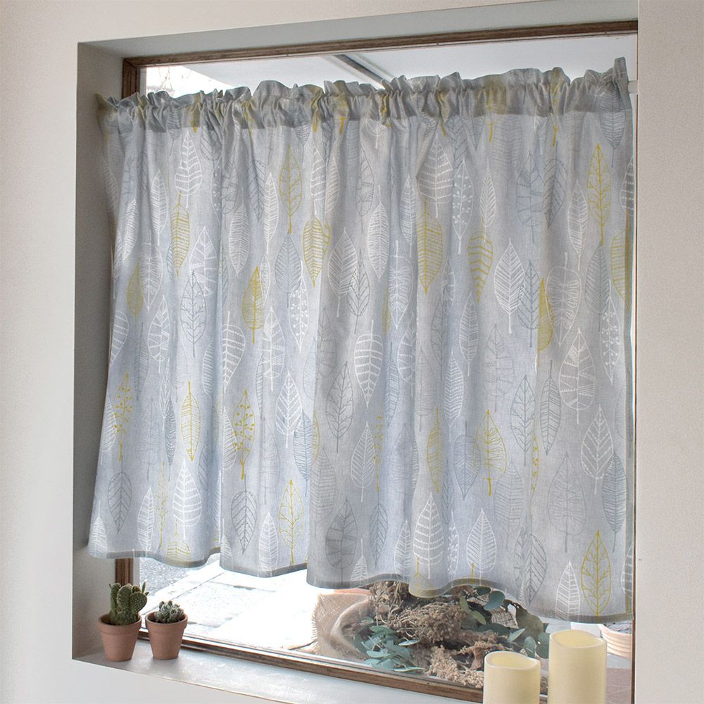 アウトレット カフェカーテン 綿100% (72cm×142cm) スタンダードタイプ リーフスケッチ