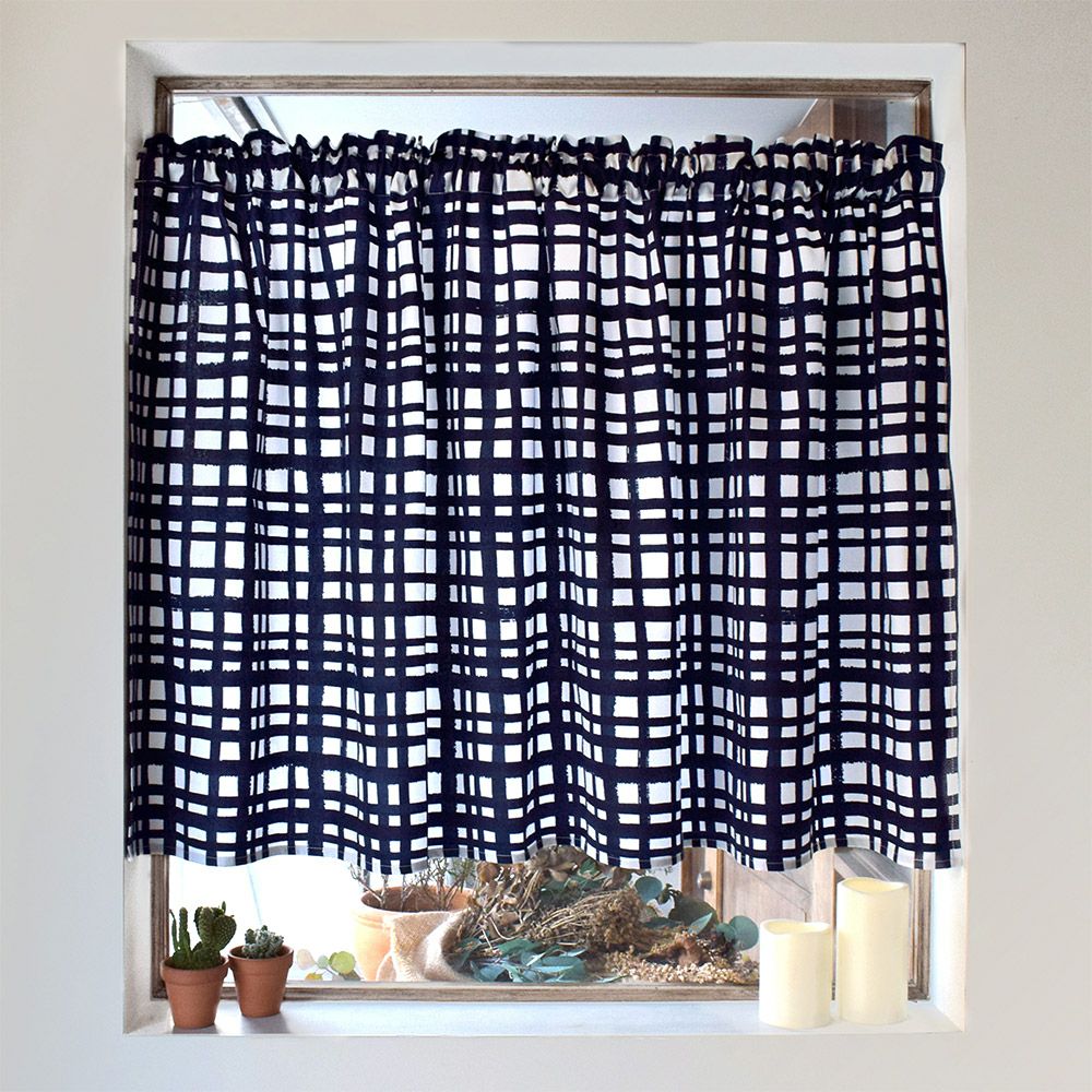 アウトレット カフェカーテン 綿100% (72cm×142cm) スタンダードタイプ インディゴチェック
