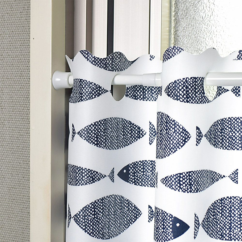アウトレット カフェカーテン (45cm×100cm) ラミネートタイプ ブルーフィッシュ