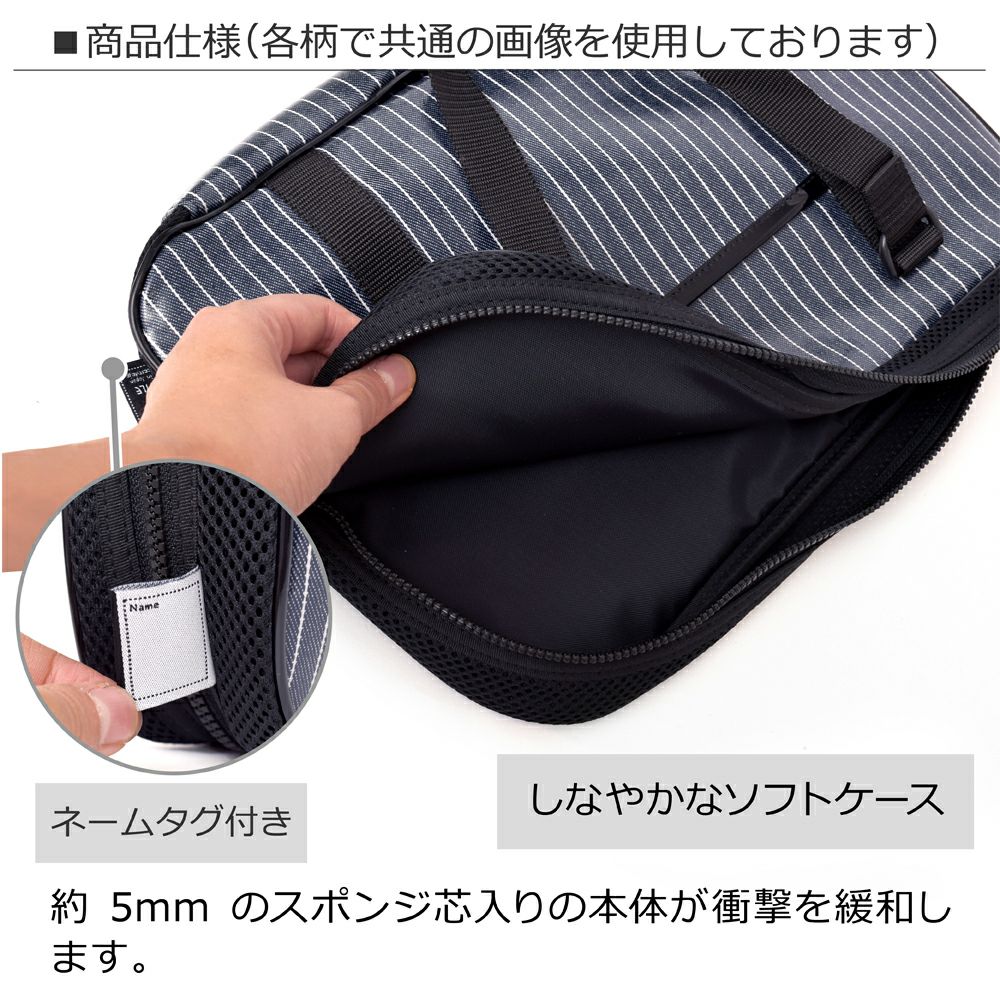 バッグの表面は墨汚れが付きにくいビニールコーティング。強度・耐久性に優れているので使い続けるうちに硬化したり表面が割れる心配がなく長くご愛用いただけます。サイドは全面クッション性のあるメッシュ生地。通気性にも優れています。
