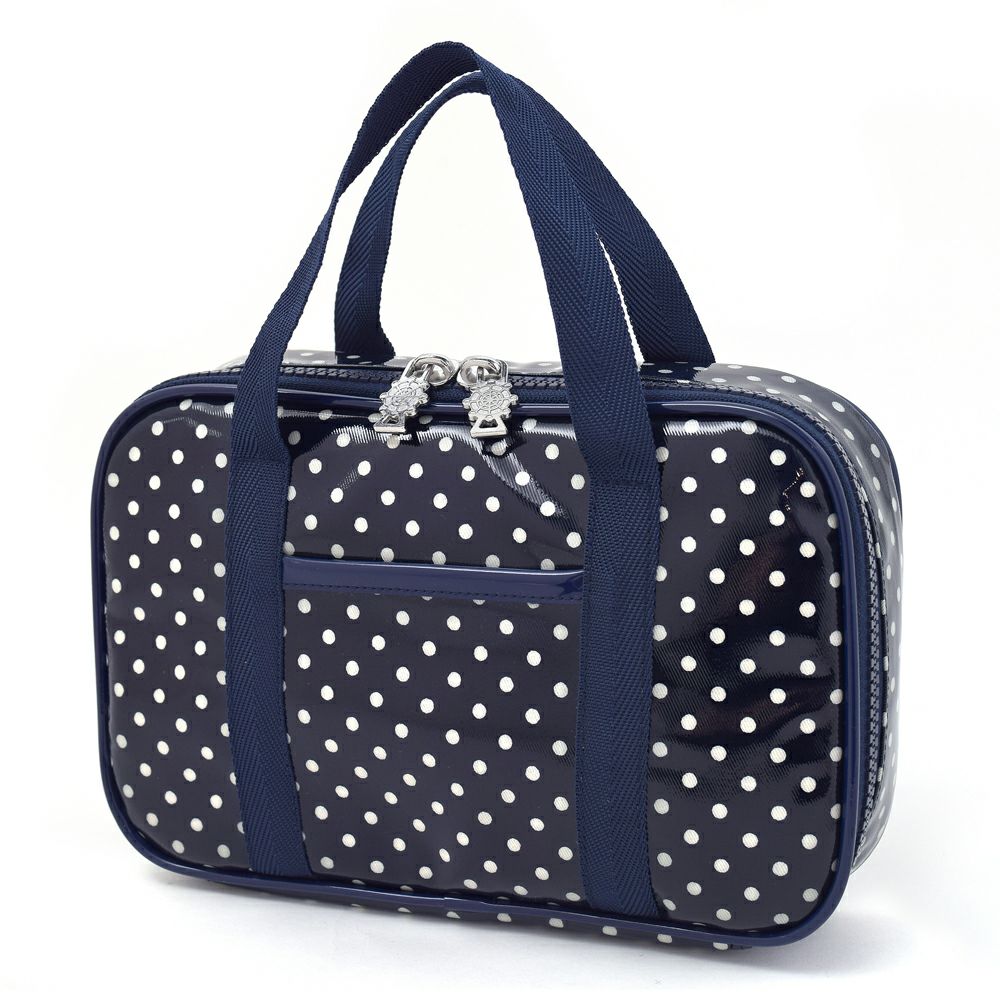 アウトレット 裁縫・ソーイングバッグ 水玉・紺