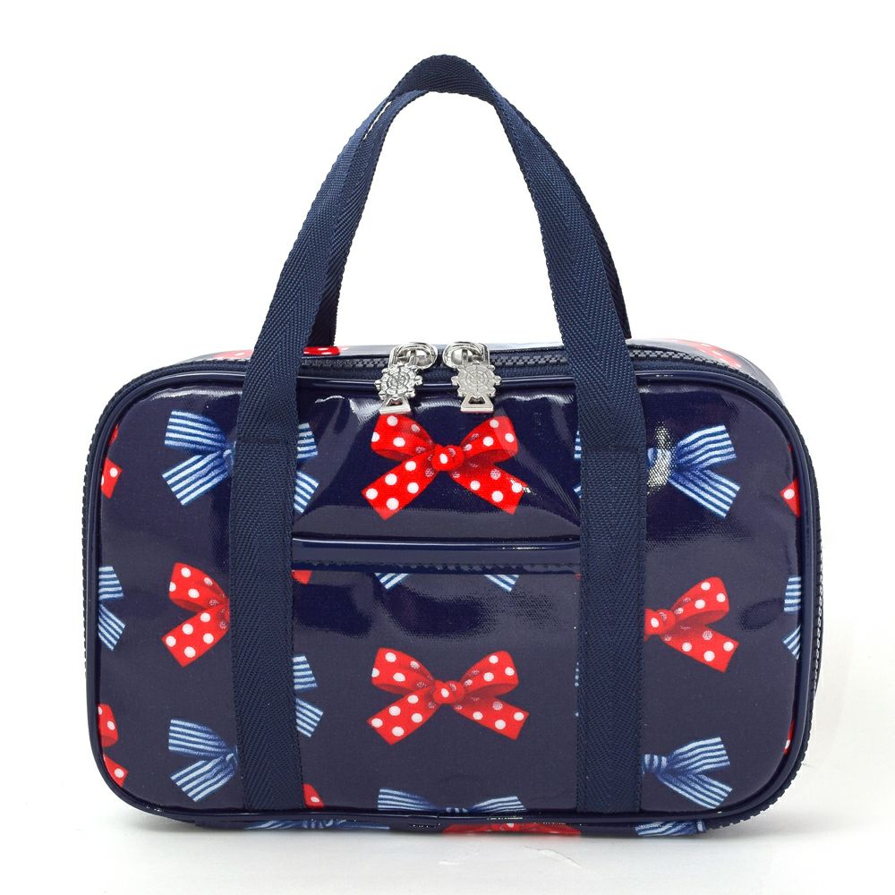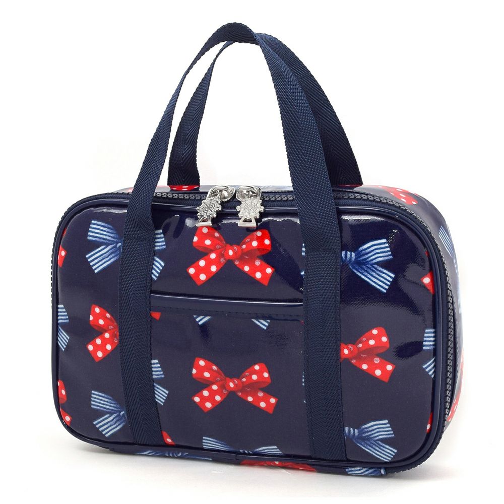 アウトレット 裁縫・ソーイングバッグ ポルカドットとストライプのフレンチリボン(ネイビー)