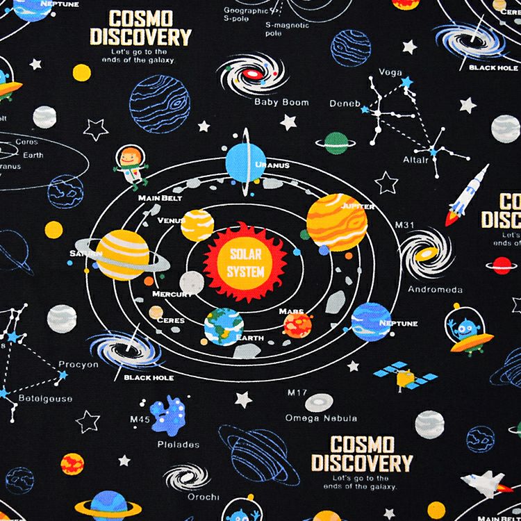 アウトレット 裁縫・ソーイングバッグ 太陽系惑星とコスモプラネタリウム(ブラック)