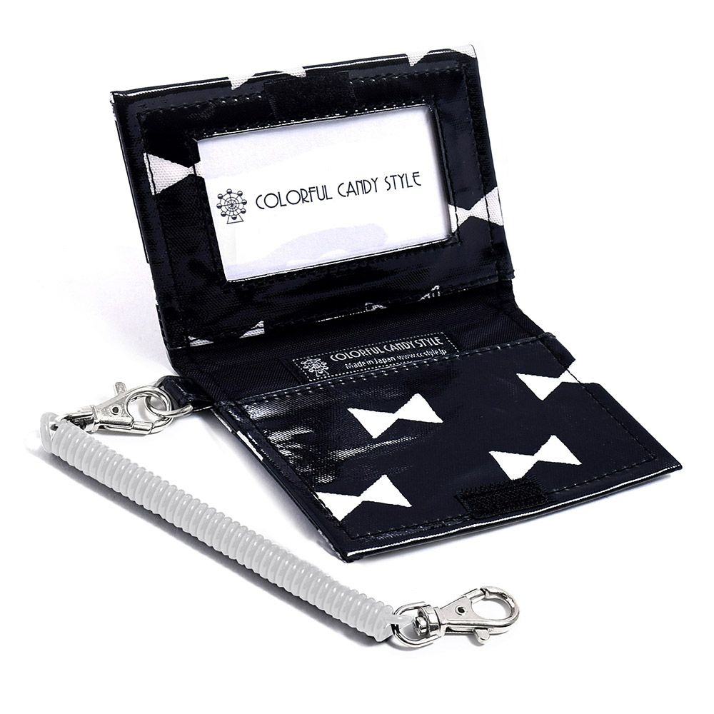 行き先や氏名などが外から見えない二つ折りタイプ。見開き両サイドに収納ポケットが二つ付いています。