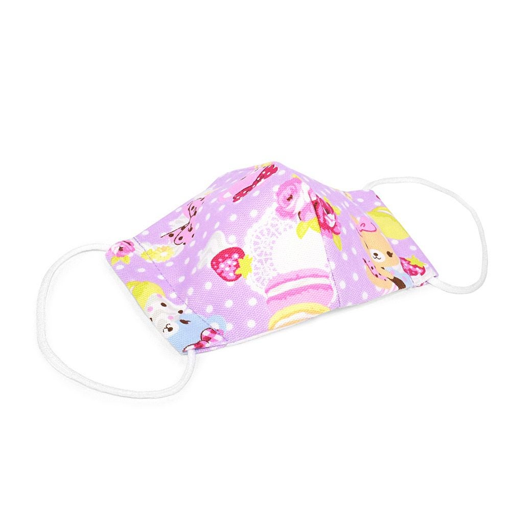 幼児用マスク2枚セット(銀イオン抗菌ガーゼ) 水玉模様とスイートくまちゃん(ライラック)