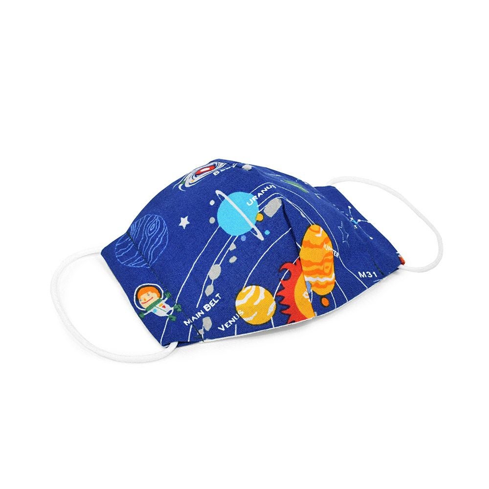 幼児用マスク2枚セット(銀イオン抗菌ガーゼ) 太陽系惑星とコスモプラネタリウム(ロイヤルブルー)
