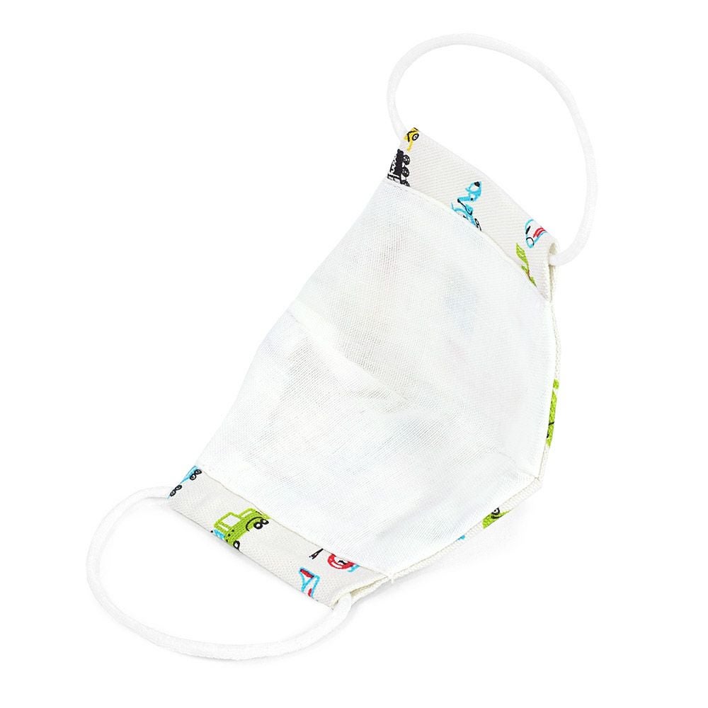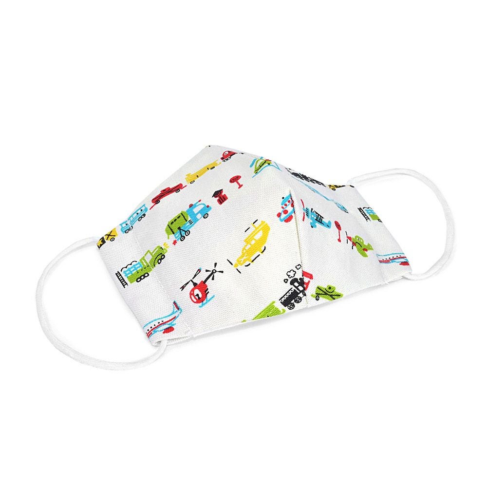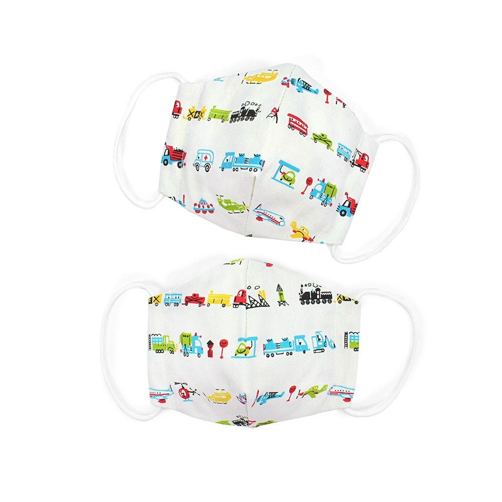 幼児用マスク2枚セット(銀イオン抗菌ガーゼ) 世界の乗り物大図鑑(ホワイト)