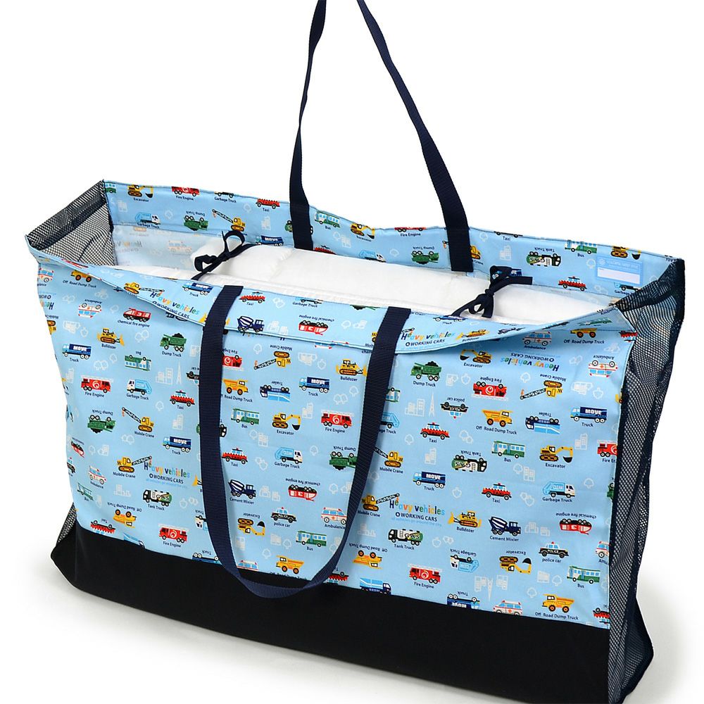 お昼寝布団バッグ アクセル全開はたらく車(ライトブルー)