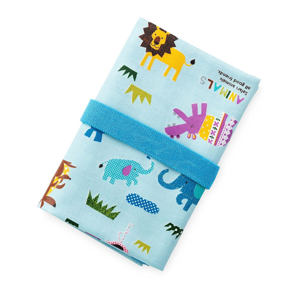 おむつポーチ・S(クラッチタイプ) サバンナ横断どうぶつ大行進(ライトブルー)
