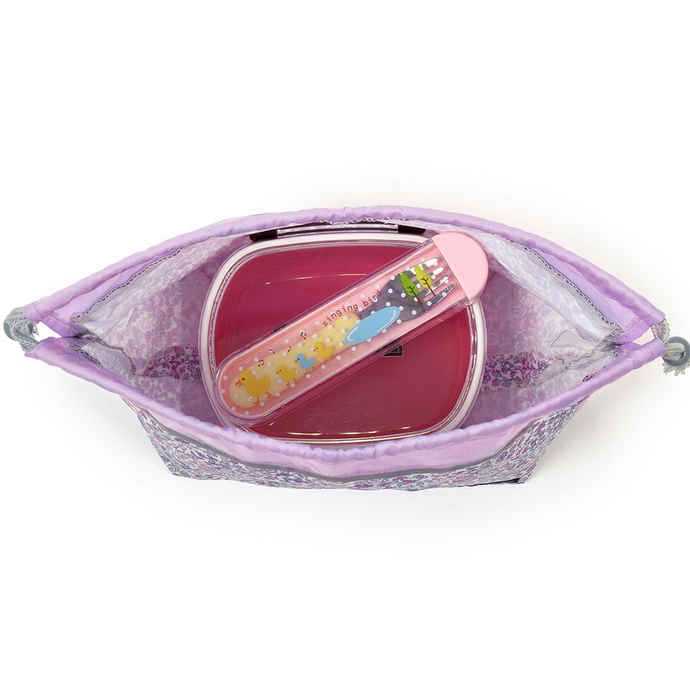 巾着 中 マチ有りお弁当袋(ネームタグ付き) フラワー模様のエアリーシャワー(ラベンダー)